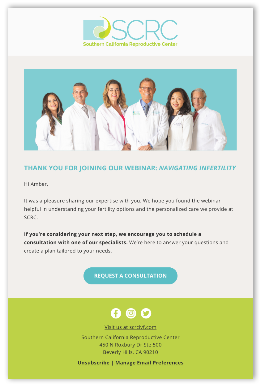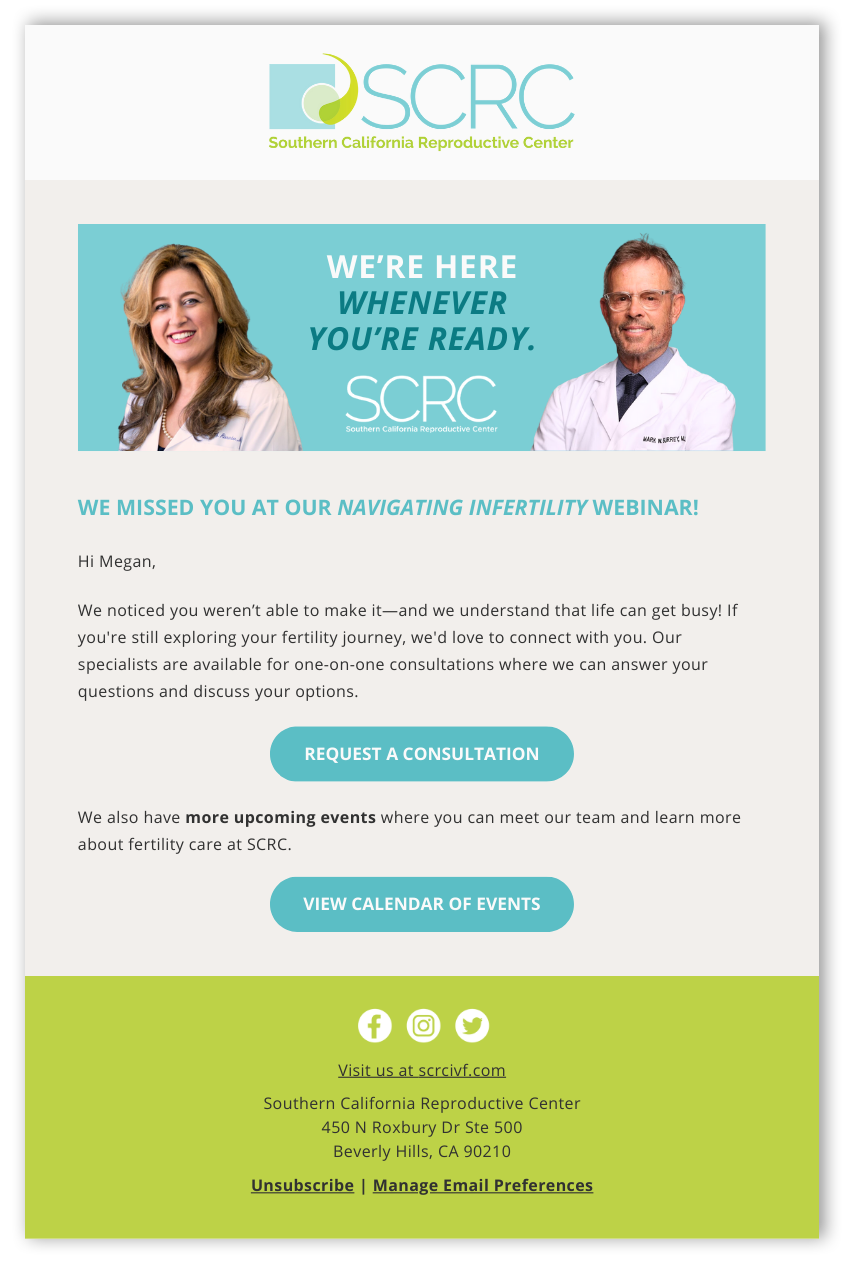 Webinar Attendees: Received follow-up messaging encouraging the next step in their fertility journey